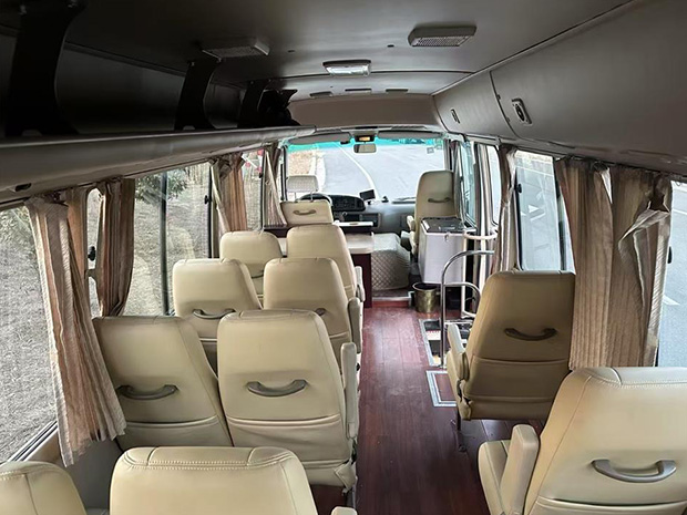 Toyota Coaster was mainly used in high-end applications in mainland China, such as hotel pick-up, airport VIP pick-up, internal company commuting, etc. A small number of them were also used for commercial transportation.The Coaster bus usseats up to 30 people comfortably with its high roof and wide body.The deep and large doorstep allows passengers to board the vehicle more easily and safely.